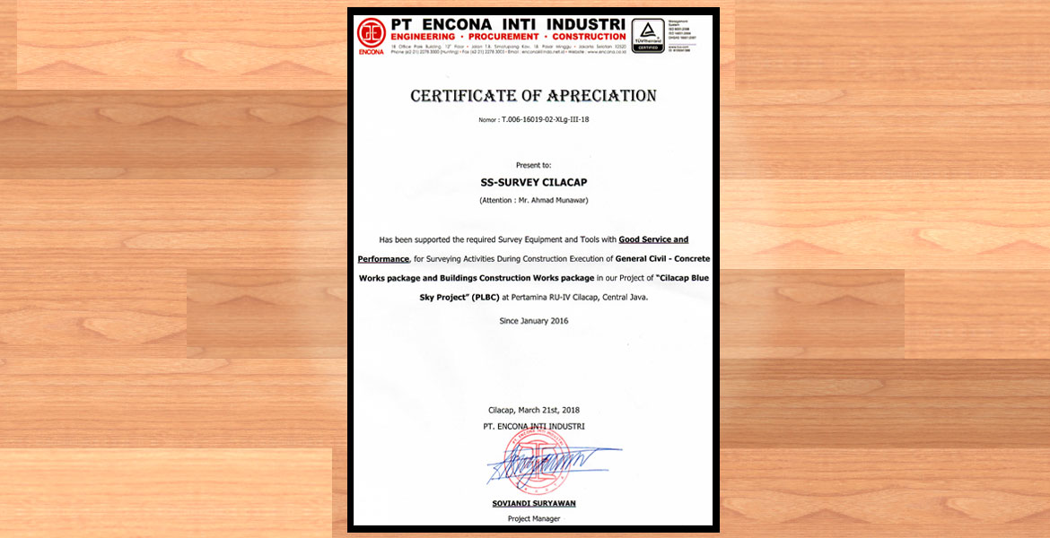 Bangga diberikan kepercayaan dan menjadi mitra beberapa Perusahaan Lokal, Nasional & Internasional. Dan SS-Survey Cilacap berkomitment untuk terus memberikan pelayanan terbaik dalam penyediaan peralatan survey, pengukuran, pengadaan assesories peralatan survey & kaliberasi peralatan survey. Terima kasih banyak atas kepercayaan dari PT. Encona Inti Industri yang telah bermitra dengan SS-Survey Cilacap sejak Januari 2016 hingga saat […]
